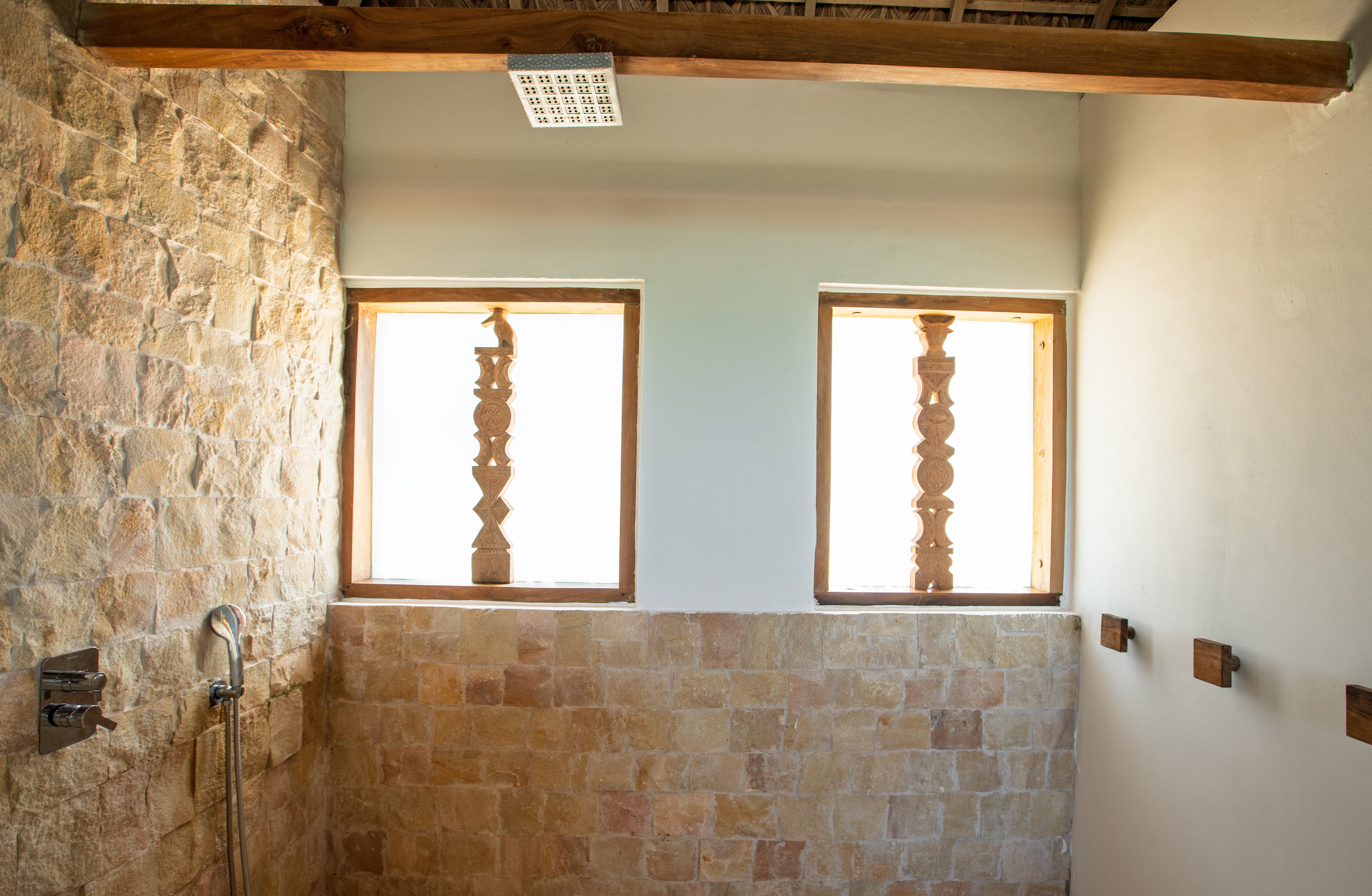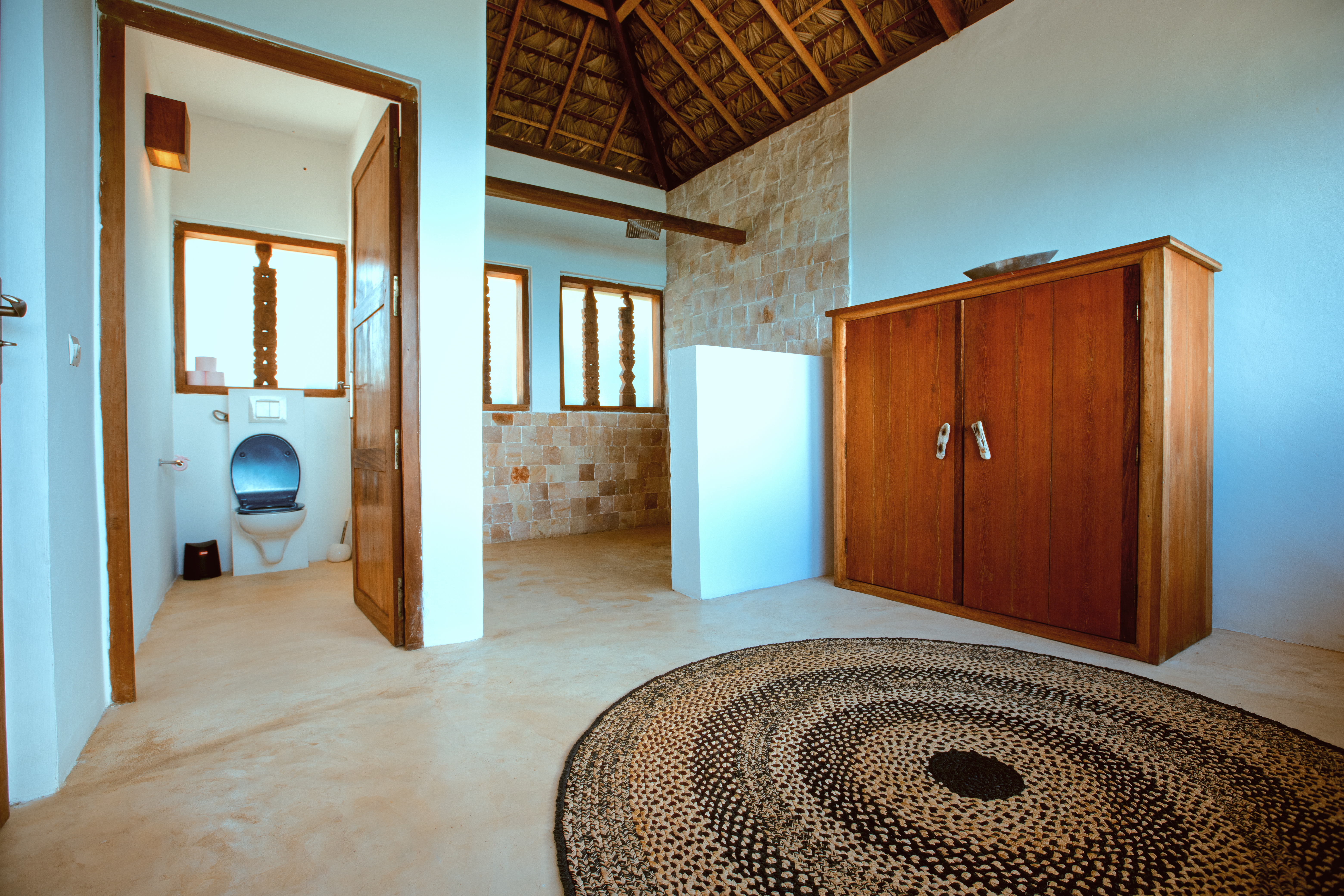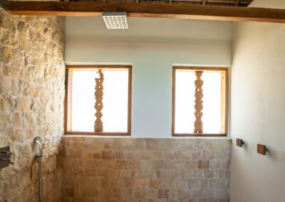 - Salle de bains, eau chaude et toilettes privées.
