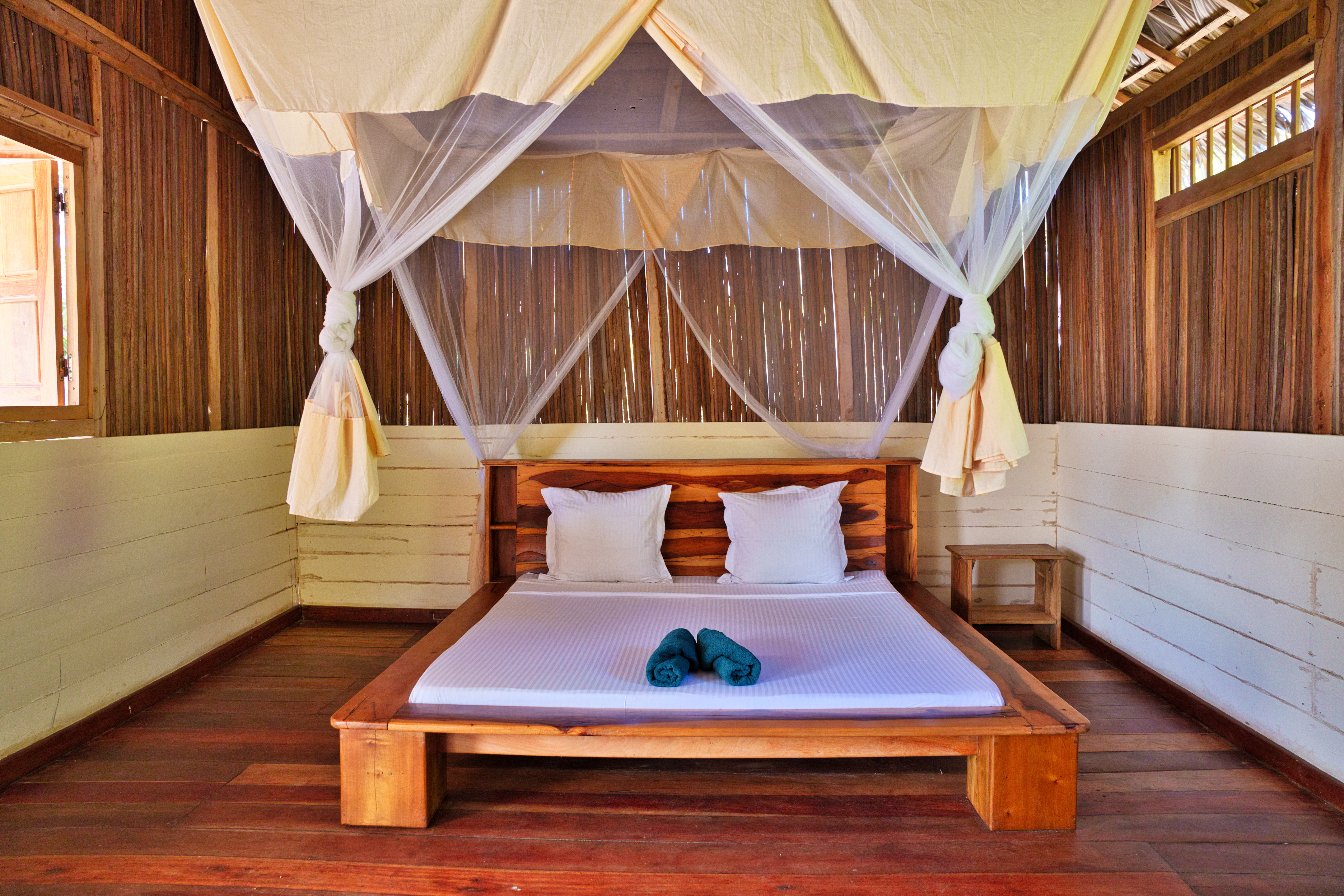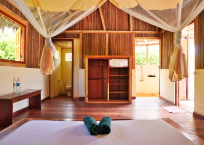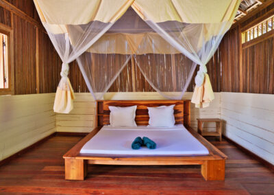 Nos six bungalows bois, nichés au sein de la végétation, véritables havres de paix à l’ambiance zen, vous offriront un dépaysement total sous le regard des lémuriens.