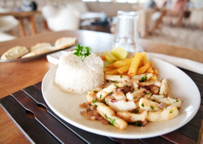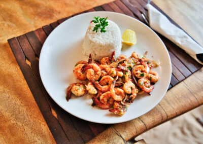 Notre restaurant/bar à la vue panoramique sur la mer d’émeraude, vous propose une cuisine fine et variée à base de produits ultras frais (pêche et marché du jour autant que possible).