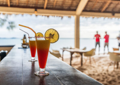 Notre bar, lieux d’échanges des sessions et des aventures de la journée, vous propose un large choix de boissons (alcoolisées ou non).